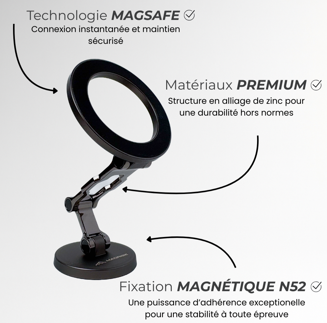 - Compatible Android grâce à un cercle métallique à placer sur votre coque de téléphone